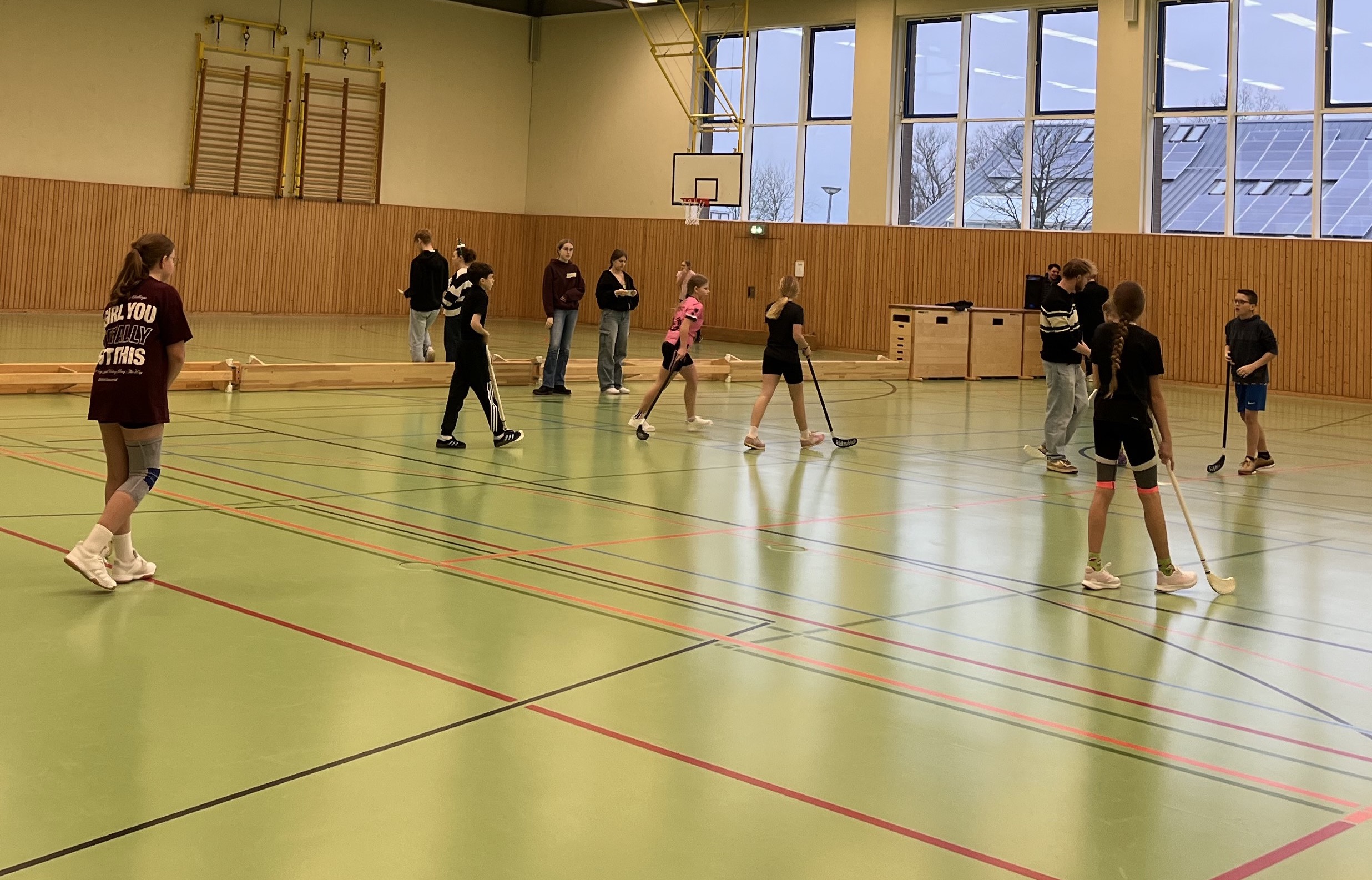 Ein spannendes Flootballturnier fand kurz vor Weihnachten in Jahrgang 5 statt. Floorball ist eine schnelle Mannschaftssportart, die in der Halle gespielt wird. Zwei Teams versuchen mit leichten Schlägern und einem gelochten Ball Tore mehr Tore als der Gegner zu erzielen. Dank engagierter Lehrkräfte und unserem tollen 13. Jahrgang war das Turnier ein voller Erfolg. Hier sind einige Impressionen vom Turnier: