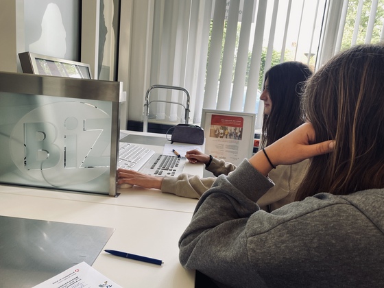 Der Vormittag im BiZ ist an unserer Schule ein Baustein der Berufsorientierung und wurde von Jahrgang 8 gut angenommen: Unterstützung bei der Berufswahl, Recherche zu den gewählten Praktikumsberufen und die Eingrenzung der Fragen „Was kann ich?" und „Welcher Beruf passt zu mir?" komplettierten sinnvoll das Schuljahresende.