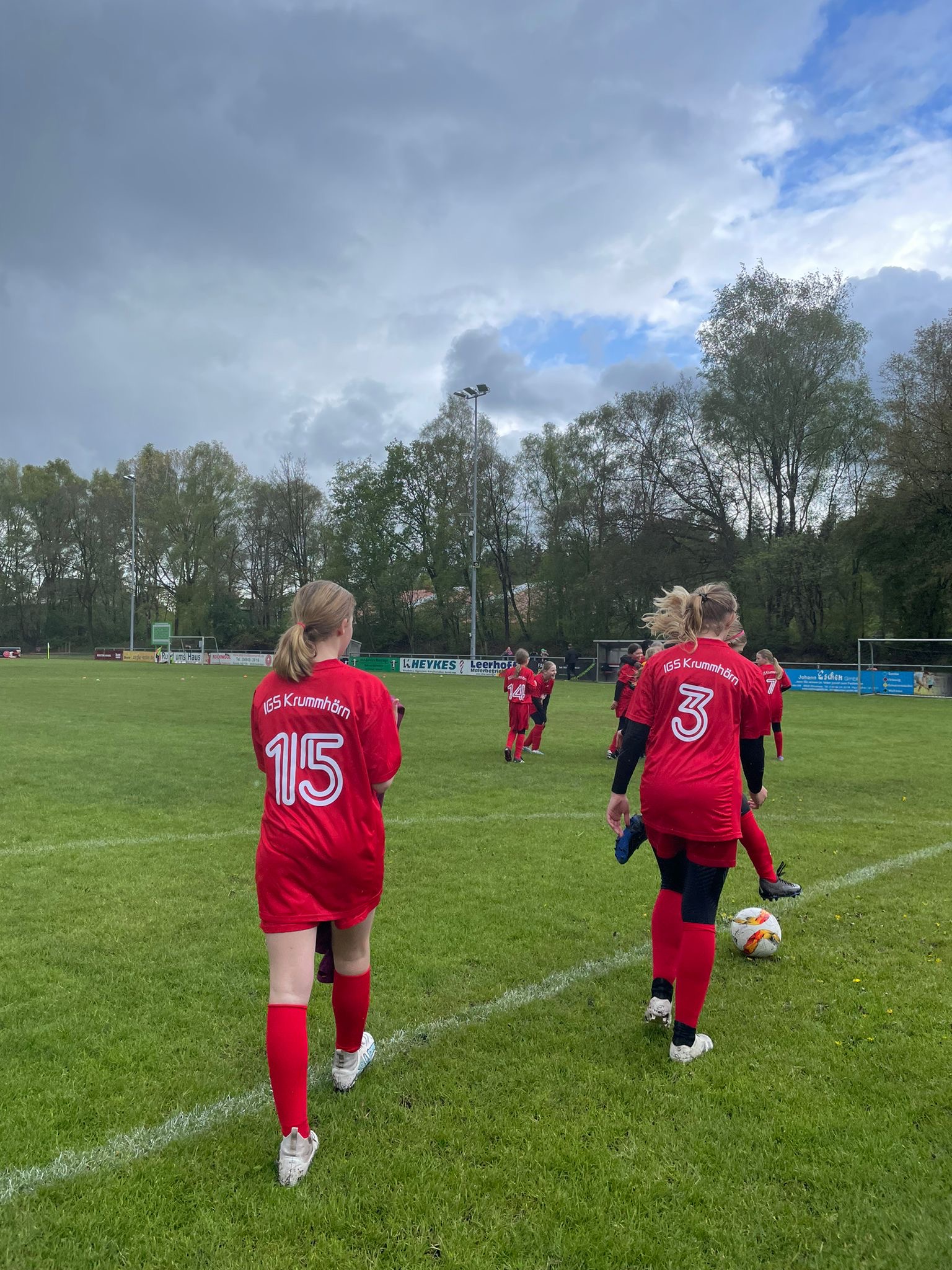 Die Entscheidung brachte das Spiel gegen die Gastgeberinnen aus Wiesmoor. Wieder war es zunächst ein Spiel auf Augenhöhe. Dem 1:0 durch Lotta folgte der Ausgleich. Die Wiesmoorerinnen drückten, aber die super abgestimmte Abwehr um Leevke, Johanna, Jolie und Kaylee „rührte nun Beton vorm Strafraum an“ und ließ keine Chancen für Wiesmoor zu. Das Spiel wurde auf Seiten unseres Teams wieder offensiver und daraus resultierte das verdiente 2:1. Das erlösende 3:1 für uns wurde dann durch das wohl schönste Tor des Tages erzielt, durch einen Schuss mit Vollspann von der Mittellinie durch Marje, wodurch wir den Turniersieg errangen.