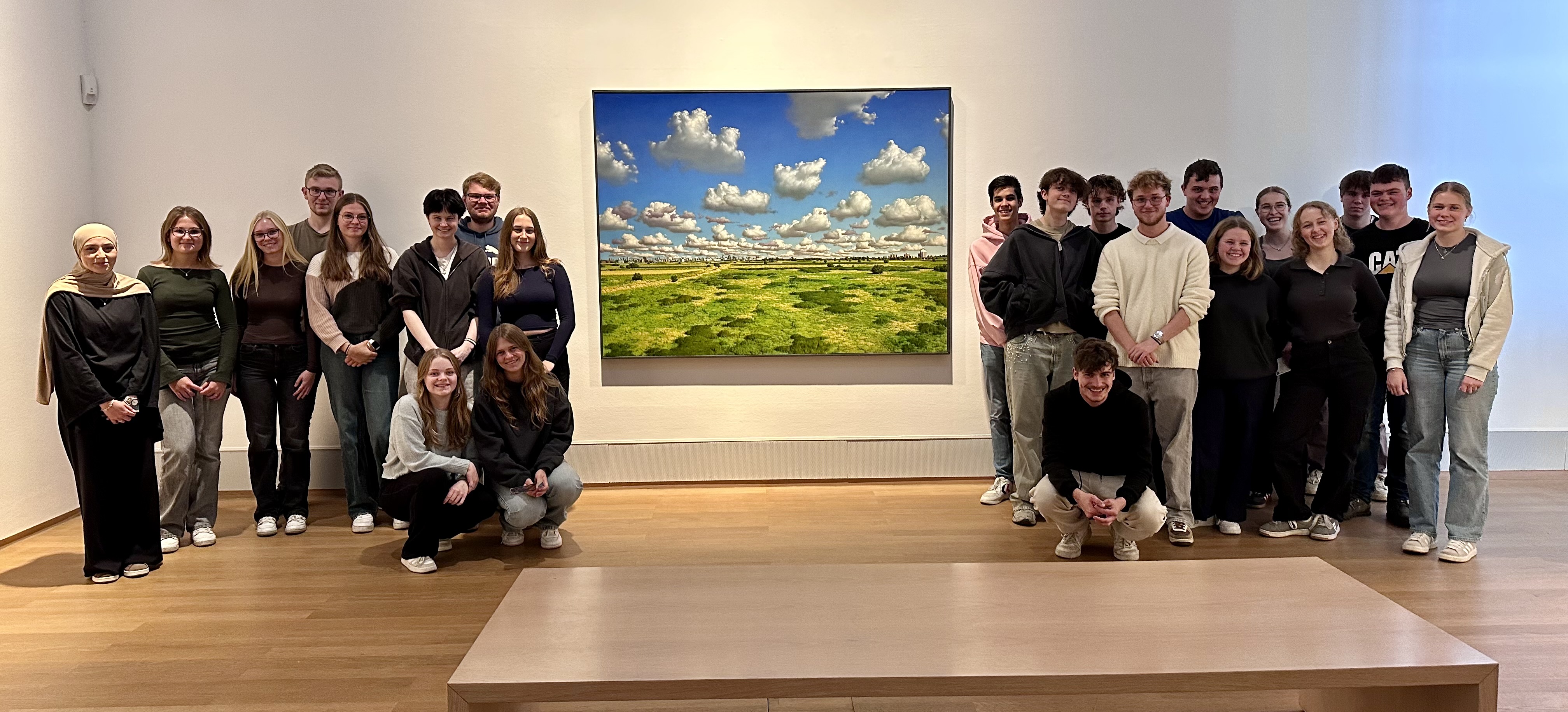 Die Schüler:innen aus Jahrgang 13 haben sich in den letzten Wochen vor den Herbstferien mit der Entwicklung der Landschaftsmalerei beschäftigt. Im Kunstunterricht haben sie sich die kunstgeschichtliche Entwicklung anhand von Beispielen von der Renaissance über das Goldene Zeitalter in den Niederlanden im 17. Jahrhundert bis zu dem Romantiker Caspar David Friedrich. Da kam es sehr gelegen, dass die Kunsthalle Emden eine Ausstellung zum Thema Wolken präsentierte.