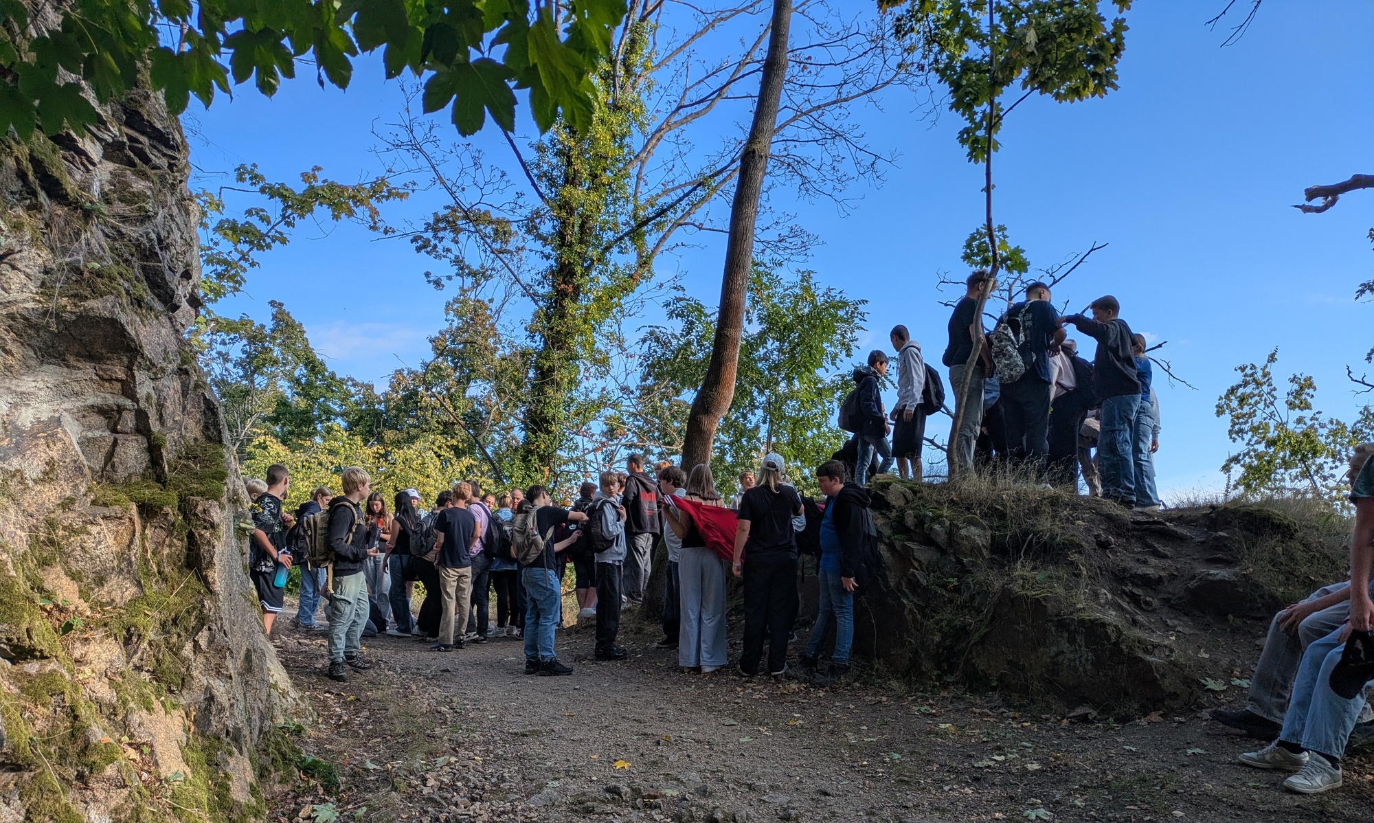 Nach einer kurzen Nachtruhe ging es mit neuer Energie an die erste Wanderung. Im gefühlten 90 Grad Winkel überwanden wir etwa 300 Höhenmeter zur Rosstrappe. Dort gab es neben dem sagenumwobenen „Hufmal“, ein großer Hufabdruck im Felsen, eine spektakuläre Aussicht zu bestaunen.