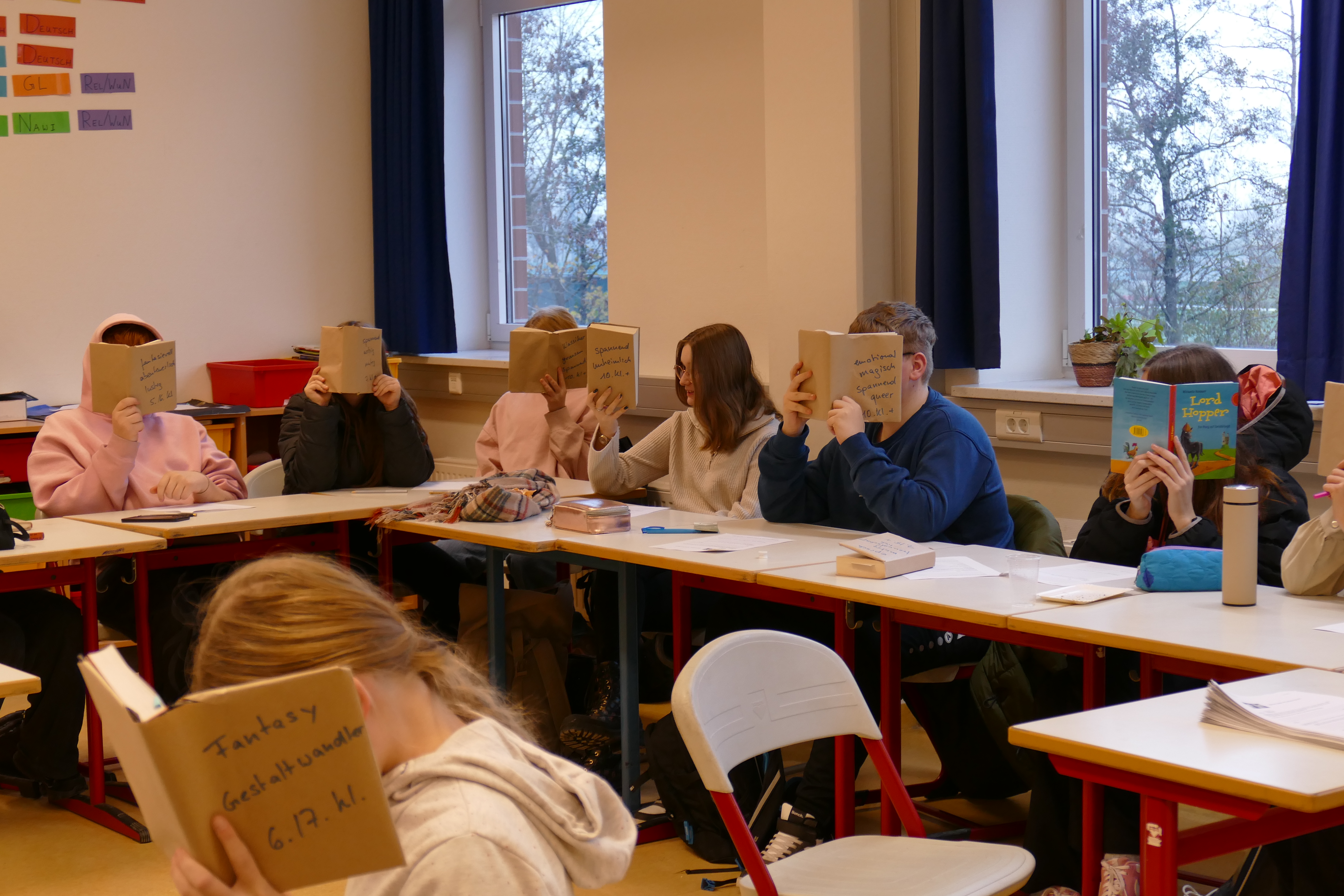In den Projekten „Bücher Bingo“, „Vorleselotterie“ und „Abenteuergeschichten“ wurde spielerisch mit dem Thema Lesen umgegangen. Ganz schön ins Nachdenken kamen die Schüler*innen in den Projekten „Quiz Lesung“, „Erste Sätze“ und „Escape Reading“. Im Projekt „Geschichten aus dem Wattenmeer“ waren Lükko Leuchtturm und ein Austernfischer zu Gast. Besonders gemütlich ging es in den Projekten „Mobile Bücherei“ und „Teatime and books“ zu. Einige Schülerinnen und Schüler besuchten mit ihren Lehrkräften die Grundschule und zwei Kindergärten in Pewsum. Dort lasen sie den andächtig zuhörenden Kindern aus ihren Lieblingsbüchern vor. Auch ehemalige Schülerinnen unserer Schule kamen zu Besuch zur IGS nach Pewsum und lasen den Schüler*innen vor. Besonders kreativ wurde es in den Projekten „Buchcover malen“, „Hörspielproduktion“, „Poetry Journal“, „Tüfteln und Zuhören“, „Die Kunst des Zuhörens“, „Geschichten in Comics verwandeln“ und „Interaktive Bücher“.