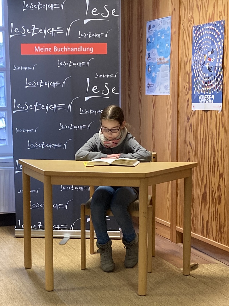 Am 15.2.24 fand der Kreisentscheid des Vorlesewettbewerbes in der Stadtbibliothek Norden statt. Neele-Marie Lagershausen aus der 6b musste bei diesem Vorentscheid gegen vier weitere Schulsieger:innen des Kreises antreten und es gab Grund zur Freude: