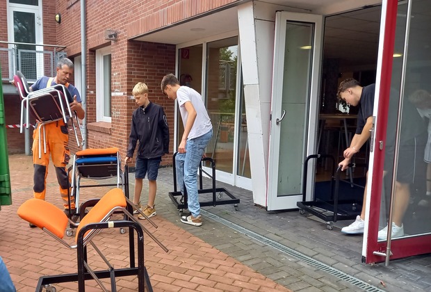 Auch das gehört zu einem vielfältigen Schulleben: In der Mensa des Standortes in Hinte fand am Samstag die Einschulung der Grundschule Hinte statt und Teile der 9d wurden indirekt ebenfalls Teil dieser Veranstaltung.