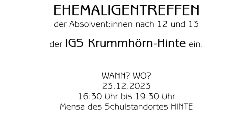 Unsere Schule öffnete am 23.12.2023 für ein erstes Ehemaligentreffen die Tür am Standort Hinte. Relativ kurzfristig organisierten die Oberstufenleiterin Julia Hillebrand und die Bibliothekarin Silke Folkerts diese Veranstaltung, die bewusst auf den 23.12. gelegt wurde, um mit diesem Termin möglichst viele Ehemalige anzusprechen.