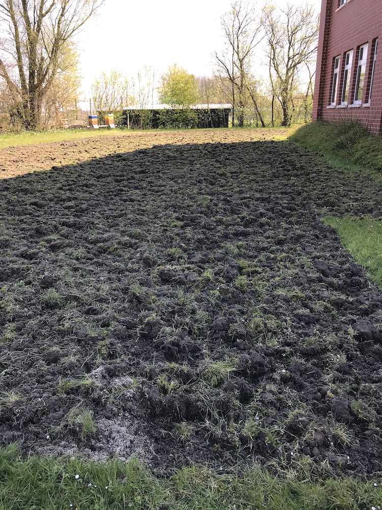 Nach langen Verhandlungen mit allen Beteiligten sind wir nun endlich eine Partnerschaft mit dem Projekt Blühende Landschaften eingegangen um die ehemalige Brachfläche hinter der Schule in ein Blütenmeer für Insekten zu verwandeln. Große Bereiche wurden dafür umgegraben und werden nun in den kommenden Tagen mit Wildblumenmischungen angesäht.
